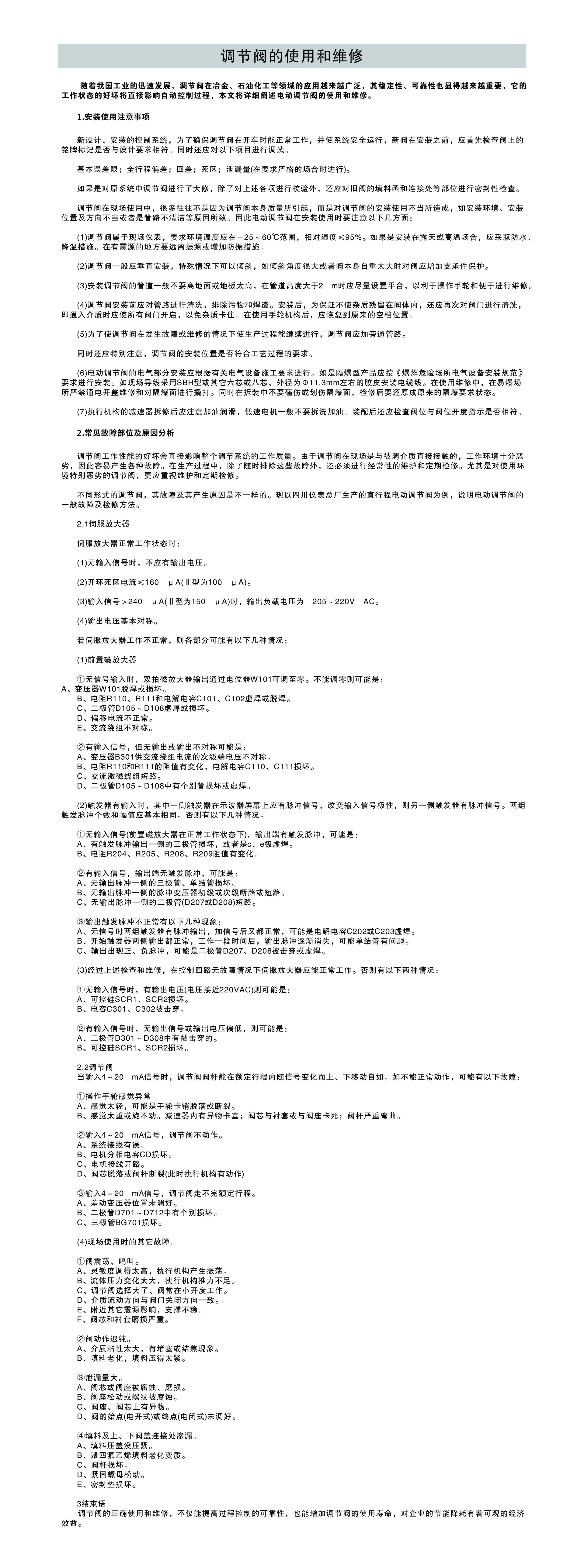 調節閥的使用與維護